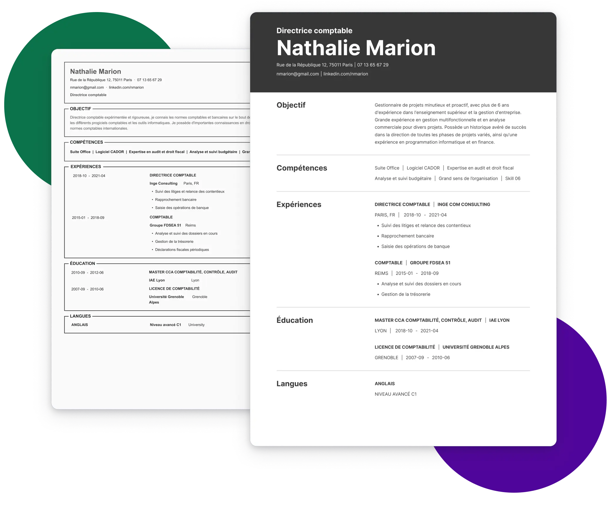 Tout ce dont vous avez besoin pour créer un curriculum vitae remarquable. Interface facile, designs attrayants.